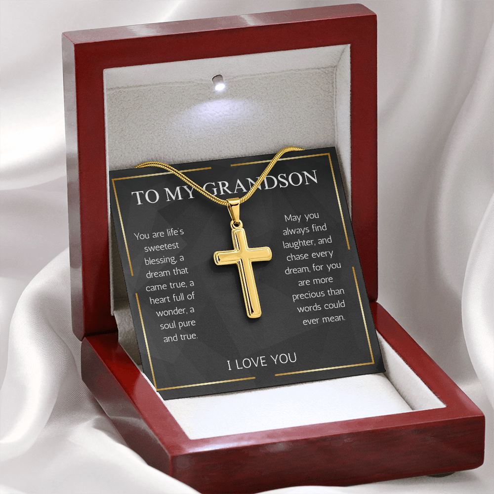 Grandson Gift Cross Necklace snake Chain for Grandson From Grandma Grandpa Nana Graduation Birthday Christmas Gift From Grandfather Grandmother