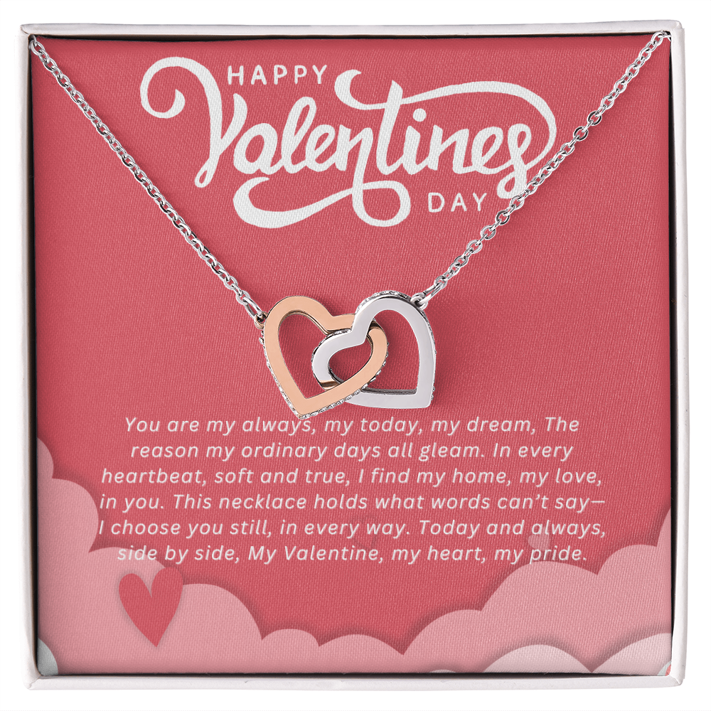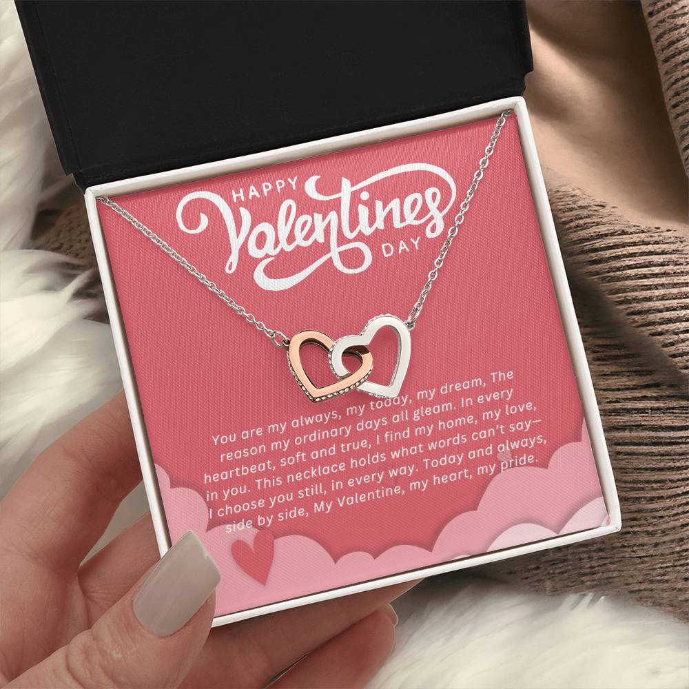 Happy Valentines Day Gift Necklace for Girlfriend, Wife, Partner, Valentine from Boyfriend Husband Partner Interlocking Heart Necklace