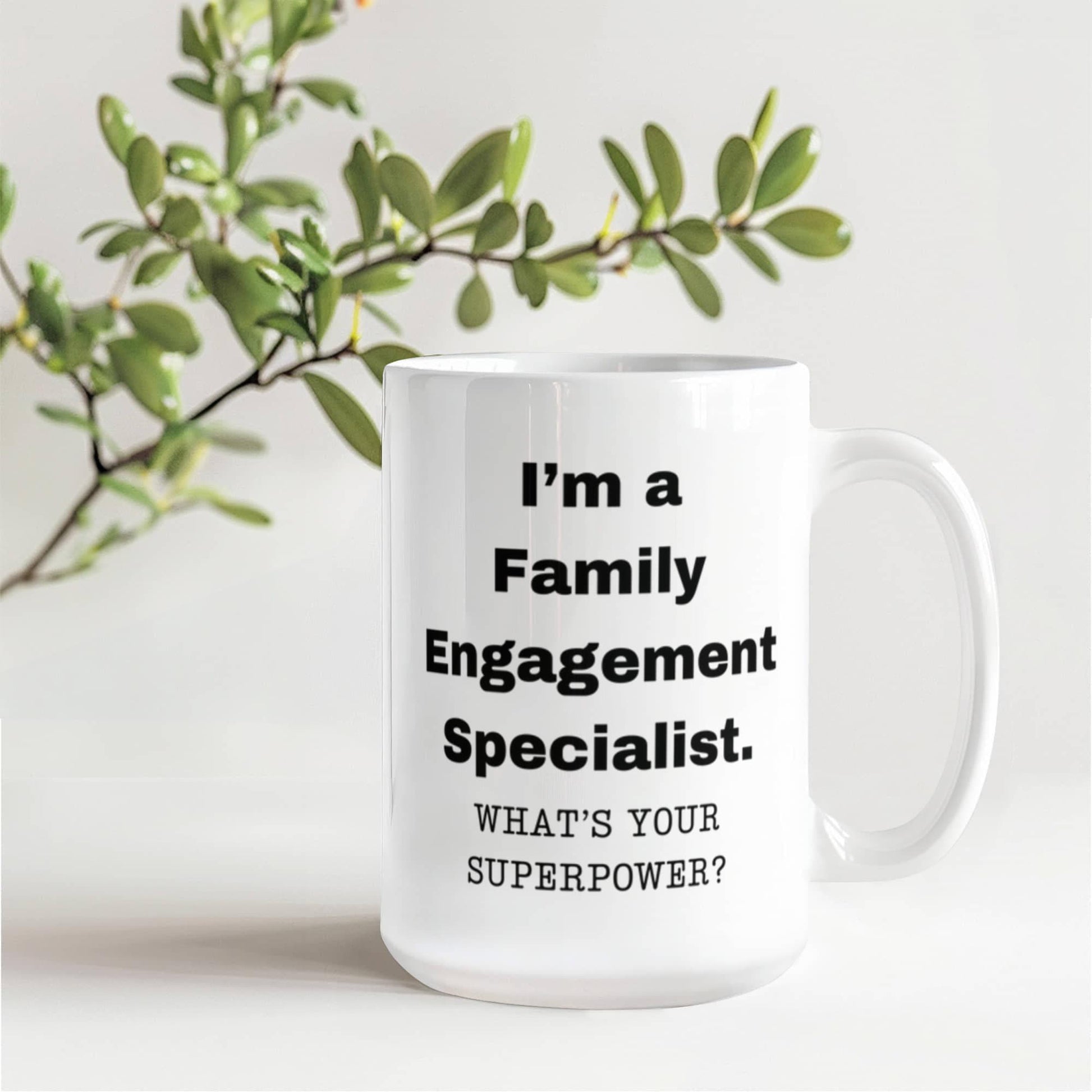 I am a Family Engagement Specialist, what is your super power, Birthday cup for Family Engagement Specialist 11 oz White ceramic mug