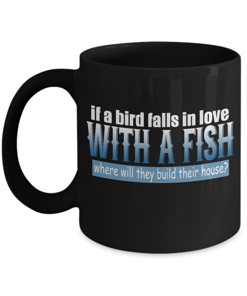 If A Bird Falls In Love With A Fish where Will They Build Their House- Black Porcelain Coffee Mug 11 Oz Funny Quotes Coffee Mug
