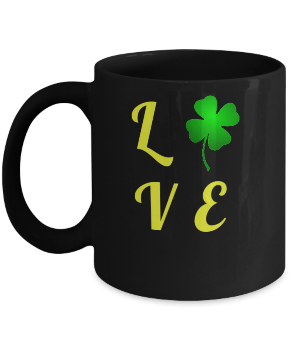 Irish Clover Love ST. Patrick's Day Gift Cute St Patricks Day Gifts Black coffee mugs 11 oz