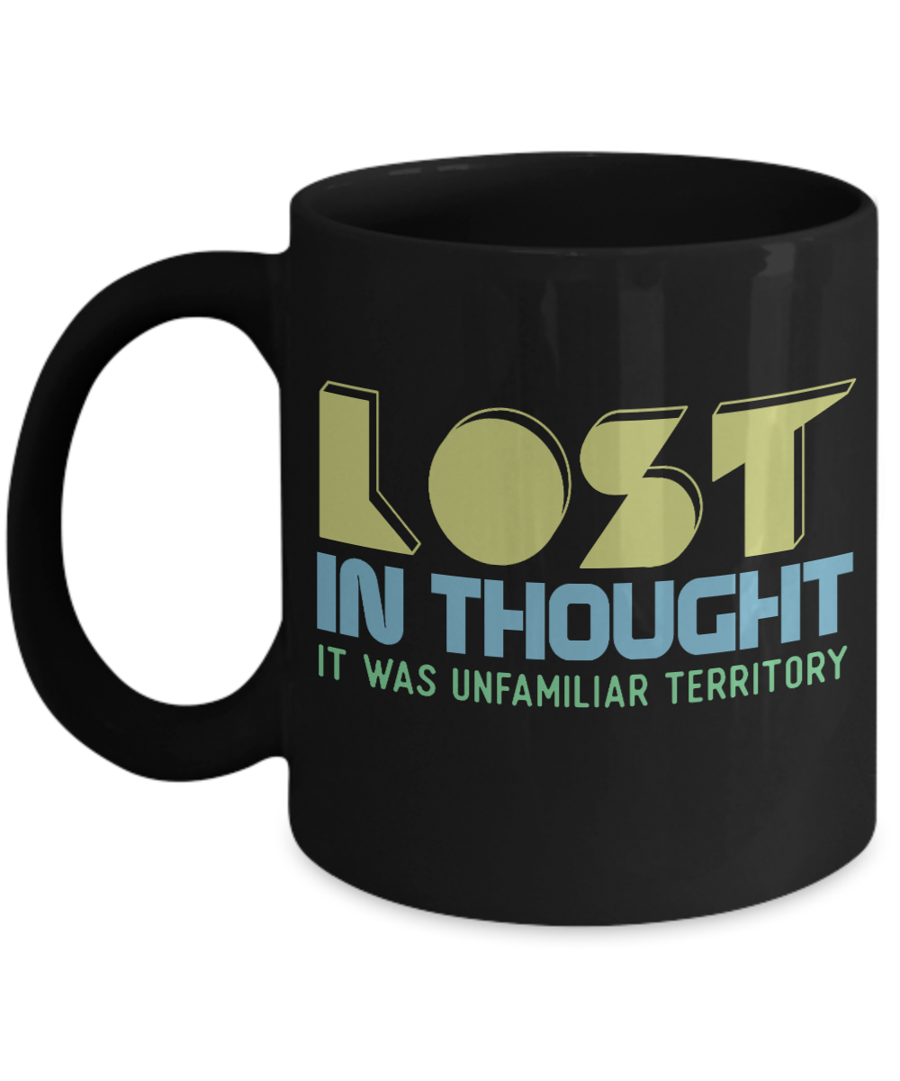 Lost In Thought It Was Unfamiliar Territory- Black Porcelain Coffee Mug 11 Oz Funny Quotes Coffee Mug