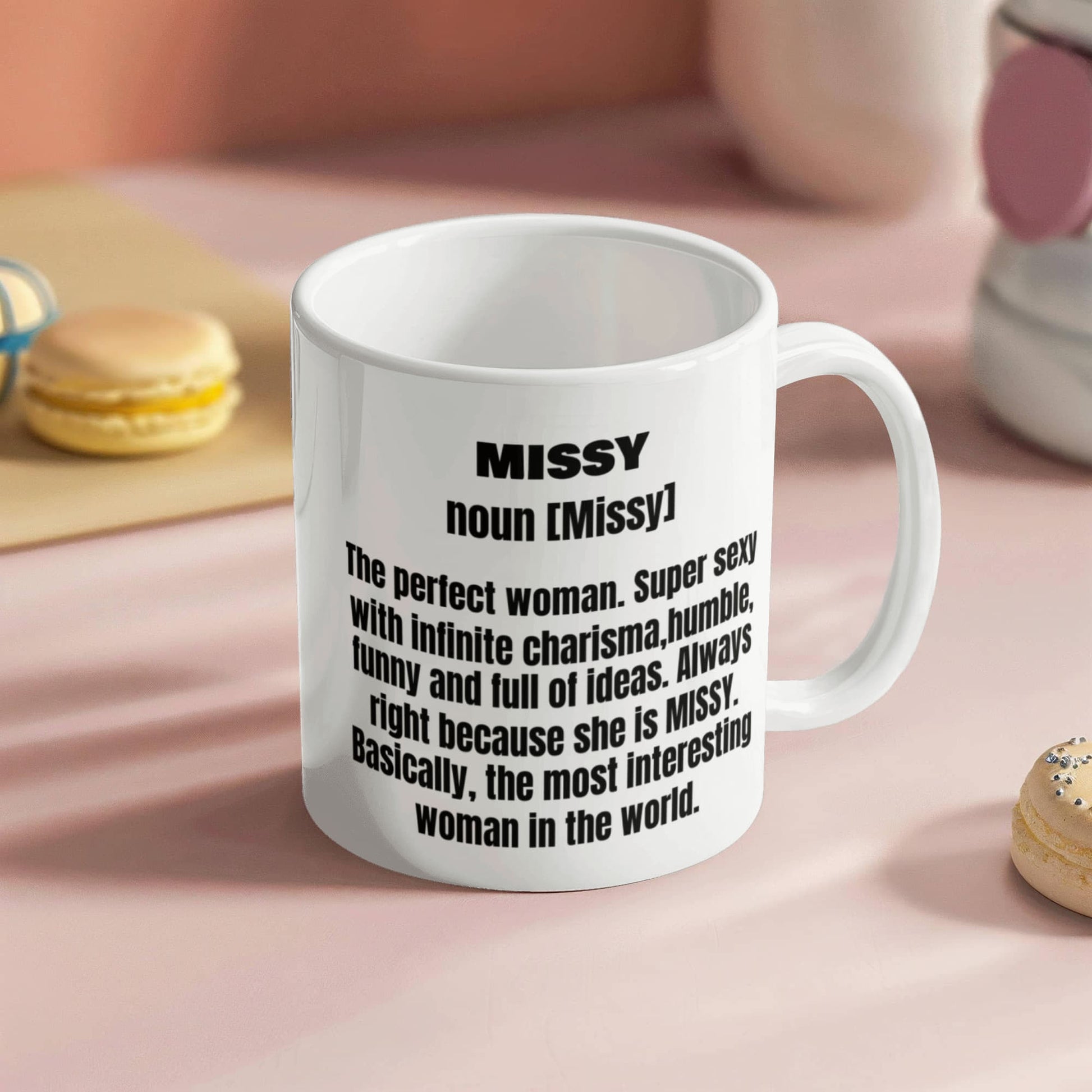 Missy First Name Adult Definition - Funny White Porcelain Coffee Mug Cute Ceramic Cup 11 oz