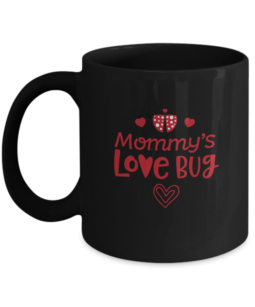 Mommy's Love Bugs Black coffee Mugs - Funny Valentines Black coffee mugs 11 oz