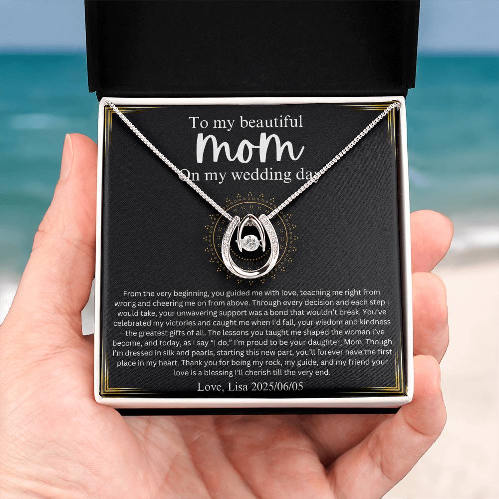 Mother of the Bride Gift from Daughter Mother of the Bride Necklace, Wedding Day Gift, Mom of Bride, Lucky in Love Necklace, Necklace From Bride