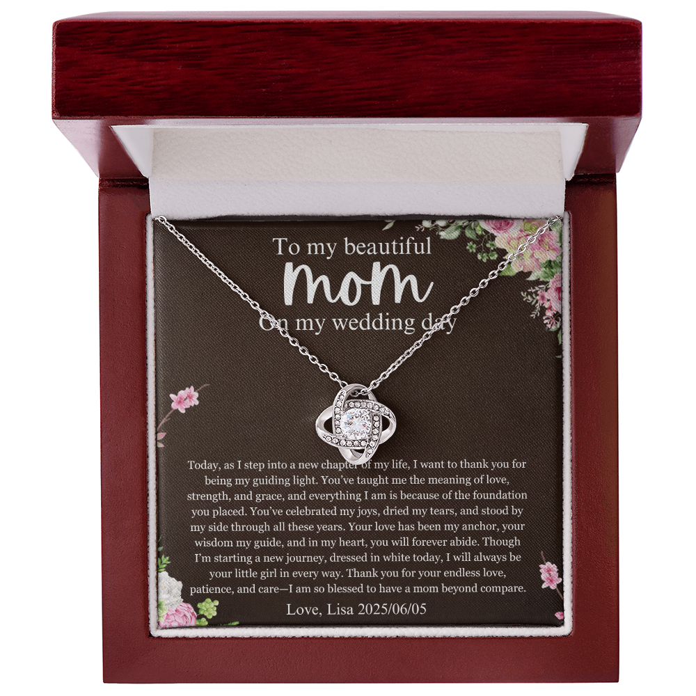 Mother of the Bride Gift From Daughter, Wedding Day Gift for mom, Love Knot Necklace, Mother of the Bride Necklace From Bride, Mom of Bride