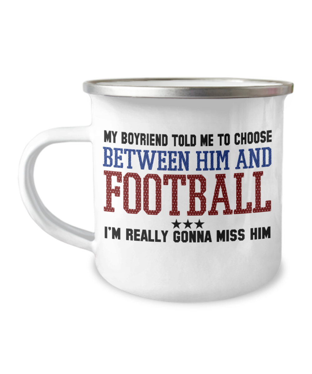 My Boyfriend Told Me To Choose Between Him And Football I'm Really Gonna Miss Him-12 Oz Stainless Steel Enamel Finish White Camper Coffee Mug