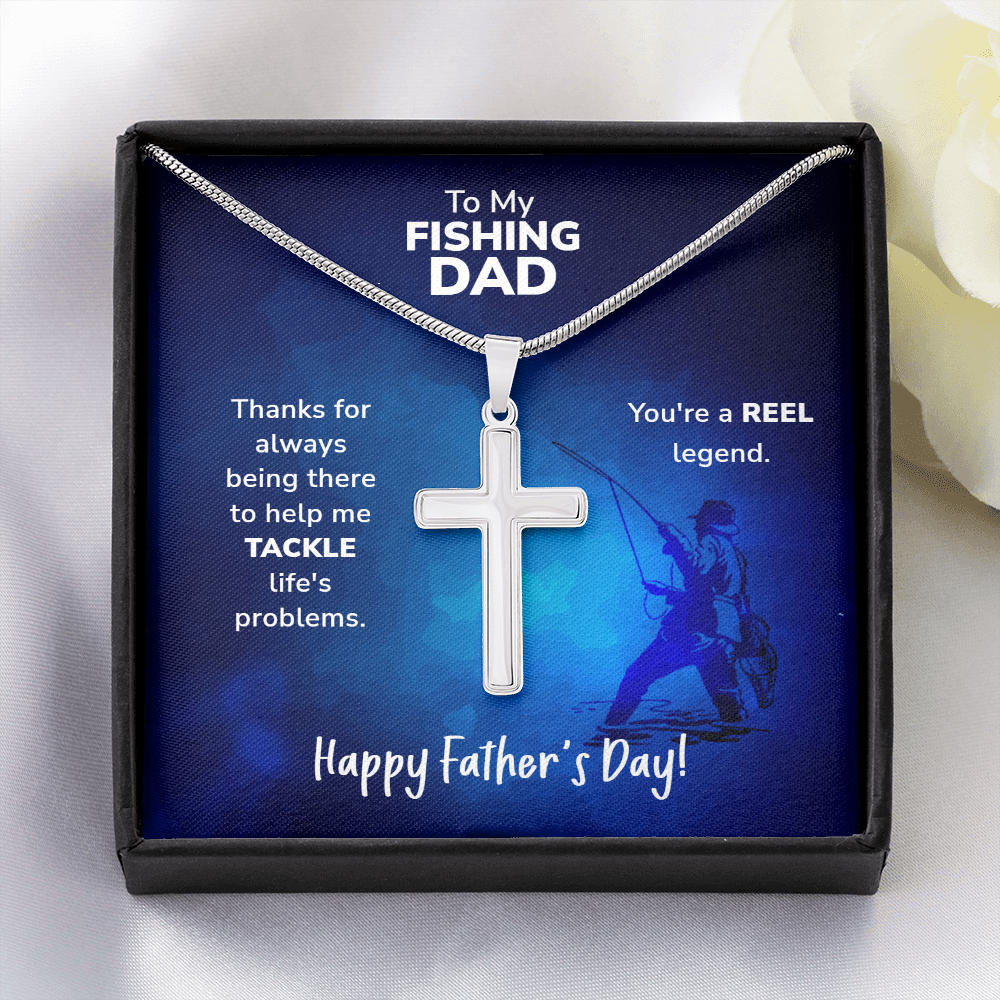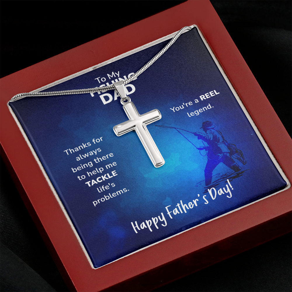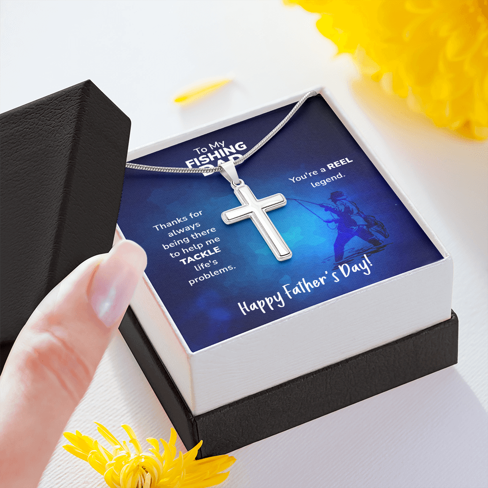 To My Fishing dad, Fathers day Gift Necklace For dad, Dad Cross Necklace, Fishing Hobby dad, Fisher men, Fathers Day Gift From daughter, Son