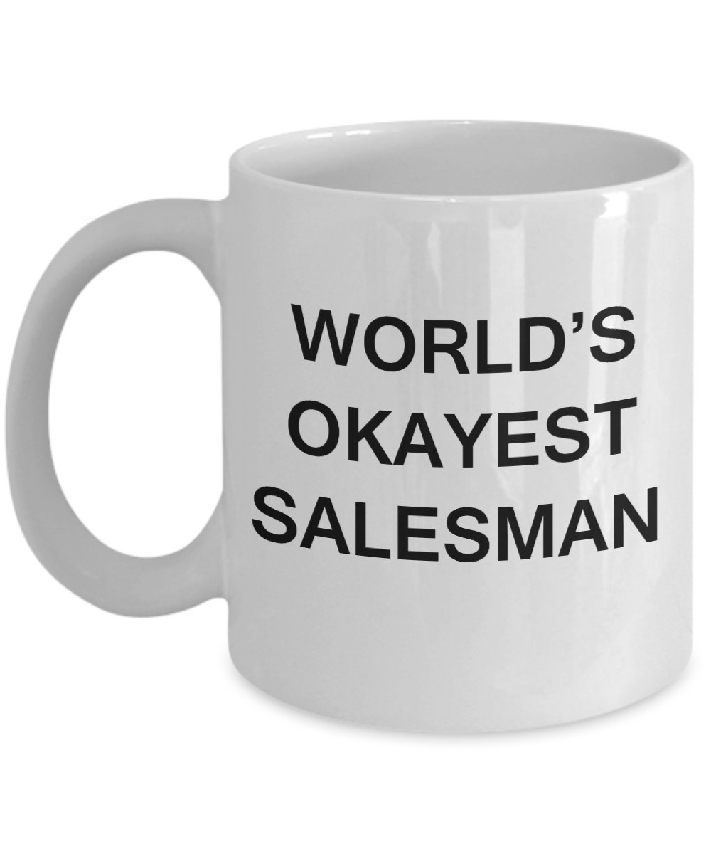 World's Okayest Salesman - White Porcelain Coffee Cup,Premium 11 oz Funny Mugs White coffee cup Gifts Ideas
